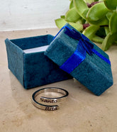 Indossa il tuo anello personalizzato per ricordare il tuo valore unico e i legami preziosi. Scegli ora il tuo messaggio inciso su misura e porta con te questo costante promemoria.