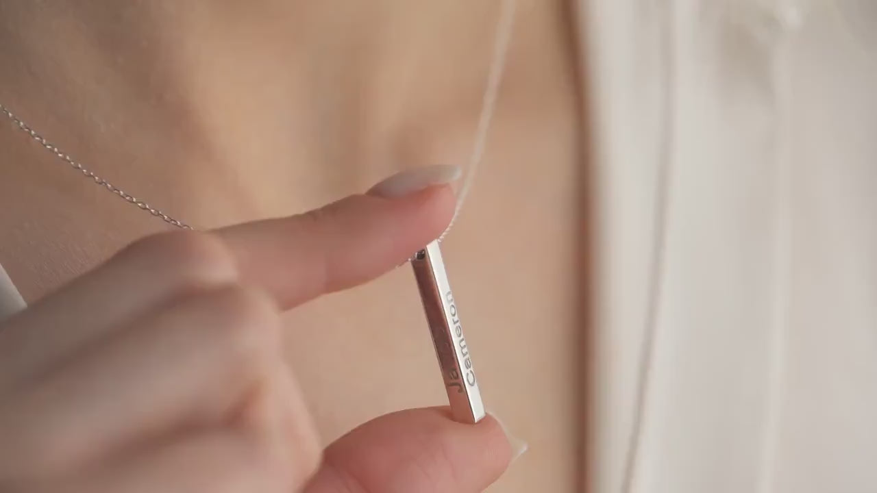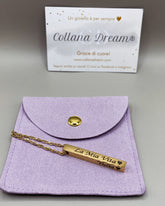 Esplora la bellezza unica della tua personalità con questa collana iconica. Il pendente a barra in acciaio inossidabile placcato oro è la cornice perfetta per le tue passioni, interessi e valori. Personalizzalo con un'incisione delicata per creare un'opera d'arte che rifletta il tuo stile personale. Scegli una parola, una data o una frase che abbia un significato speciale per te e lascia che diventi una dichiarazione dolce e sofisticata del tuo messaggio. Con questa collana, celebra la tua bellezza unica e fa'la brillare nel mondo.